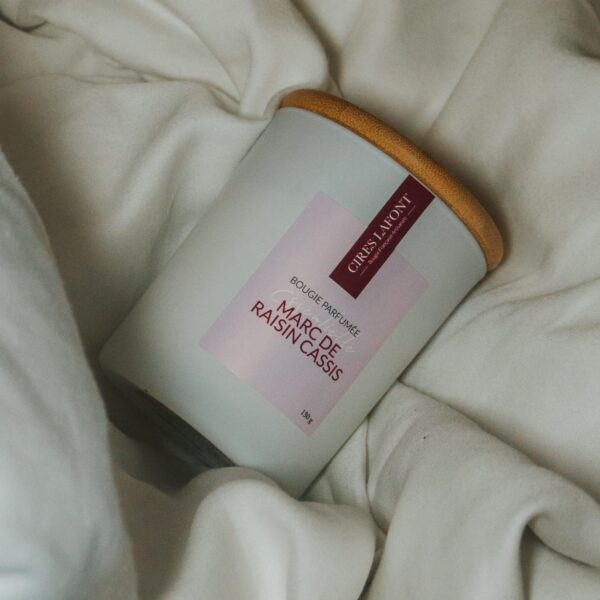 La bougie française Marc de Raisin nous transporte dans l’ambiance festive des vendanges provençales, au cœur des vignobles grouillant d’activité sous le soleil d’automne. Ses notes fruitées et gourmandes évoquent les arômes du raisin mûr et du cidre doux tandis que ses effluves boisés créent une atmosphère chaleureuse. Une symphonie de fragrances pour célébrer les traditions du Sud !